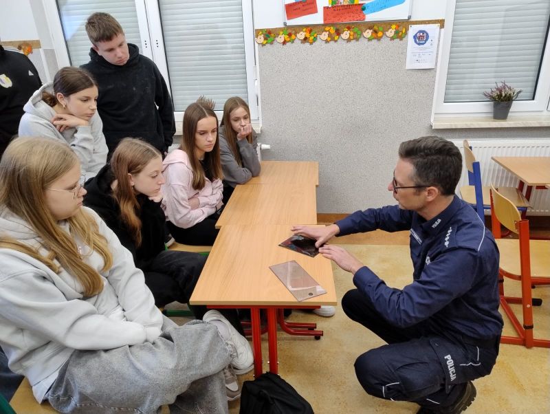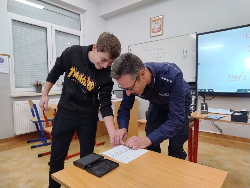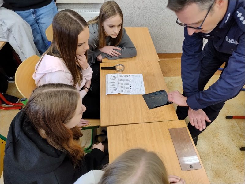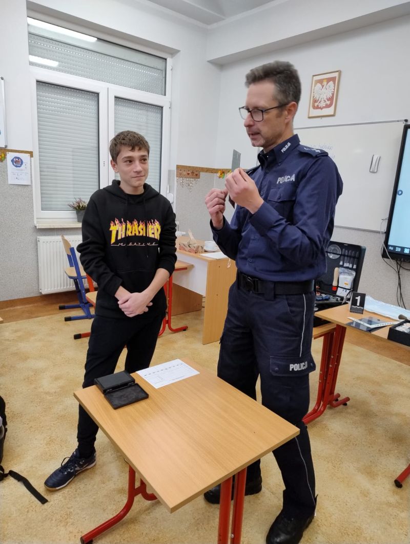 SPOTKANIE KLASY VIII Z PANEM PIOTREM MITERĄ - TECHNIKIEM KRYMINALISTYKI