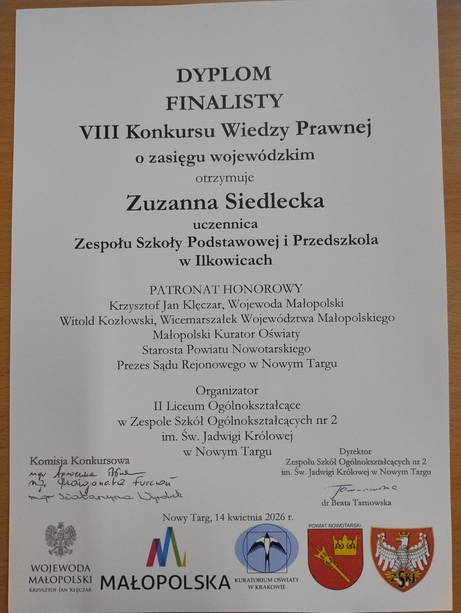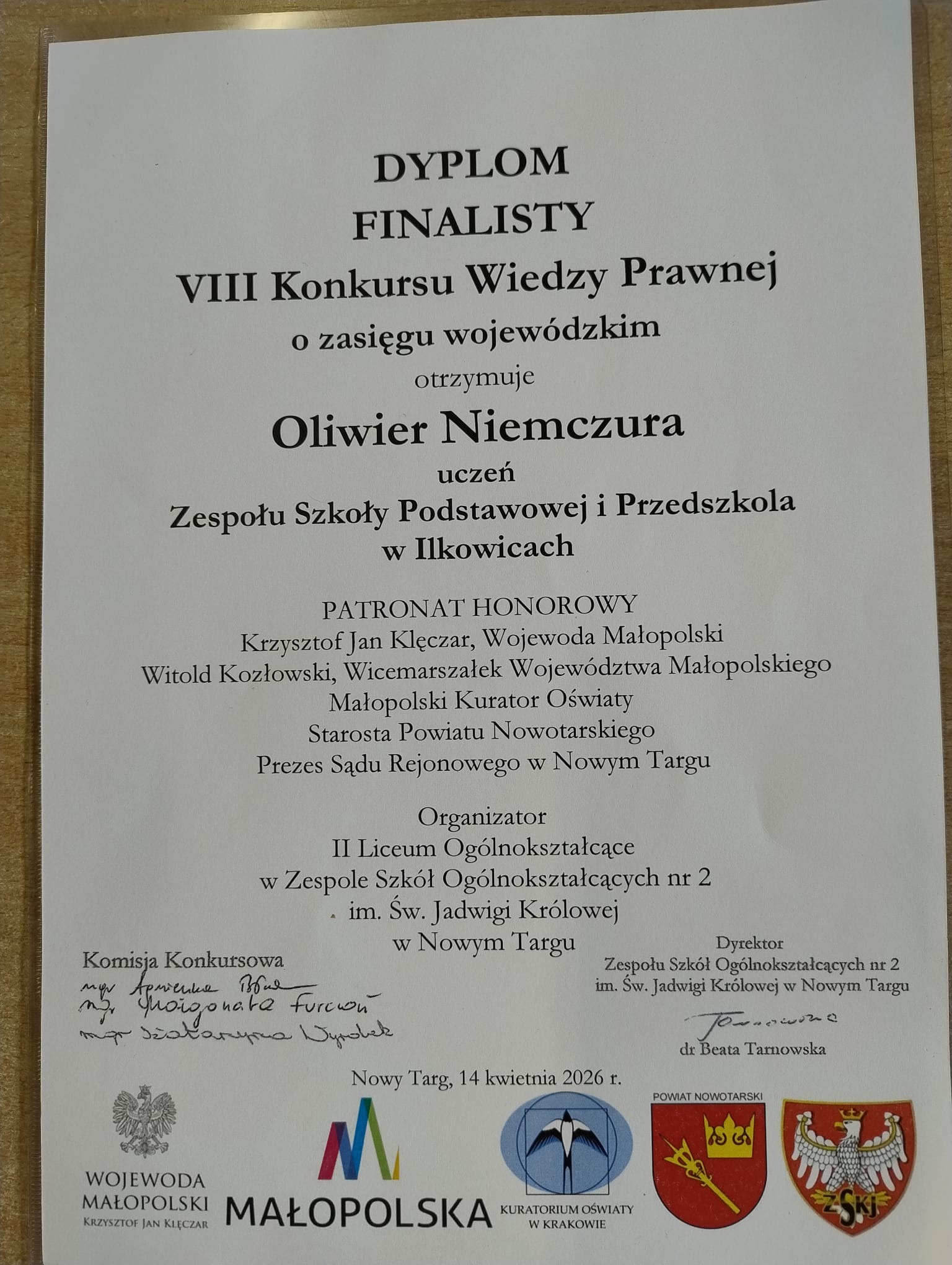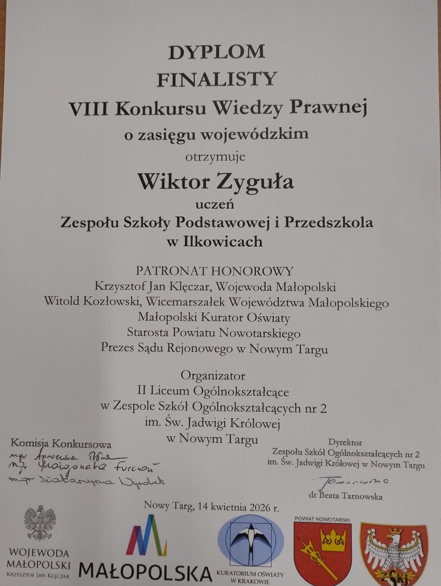 SUKCES NASZYCH UCZNIÓW W KONKURSIE WIEDZY PRAWNEJ